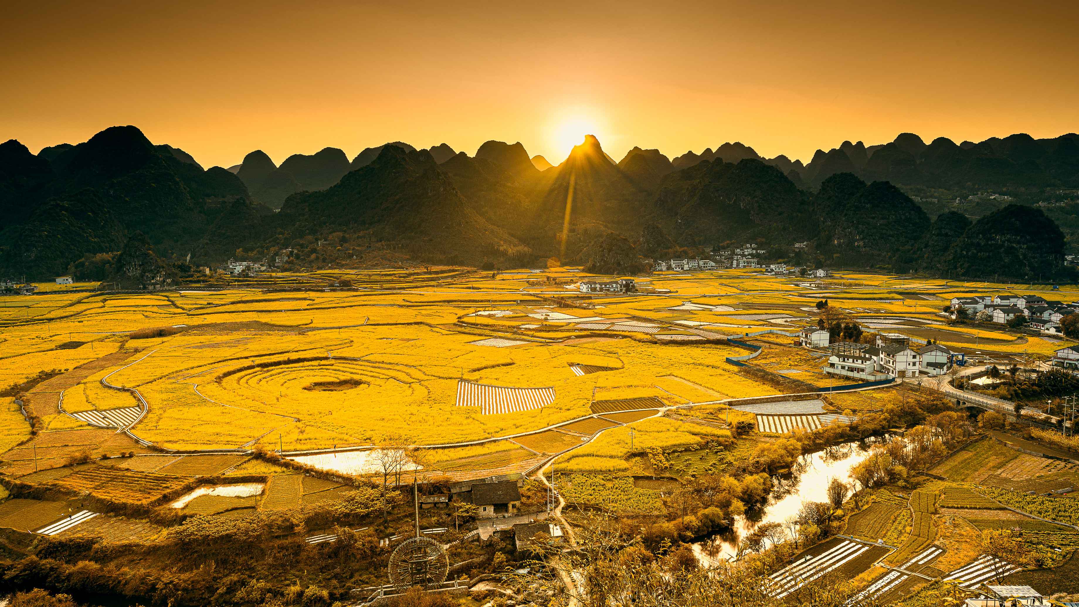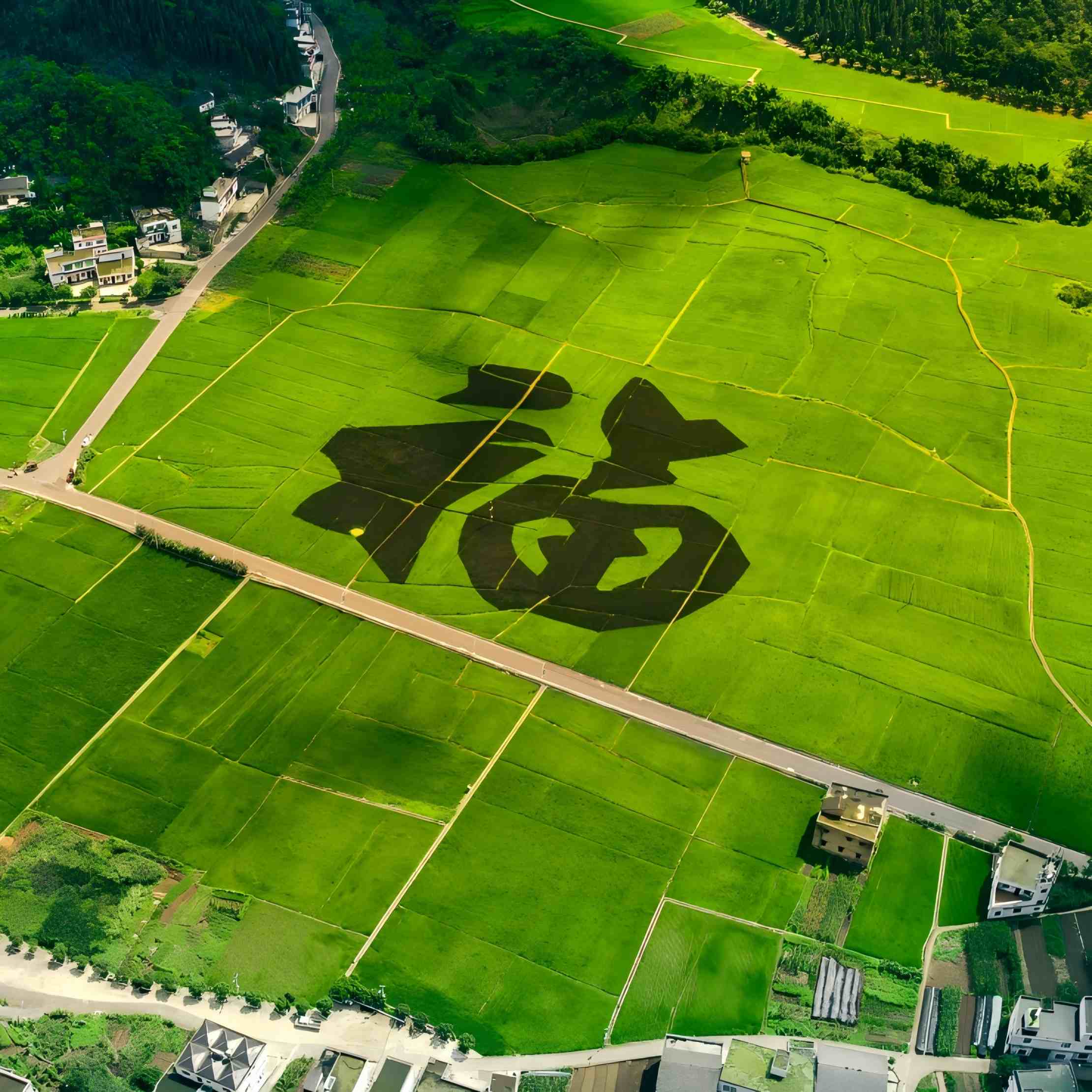 福字田在万峰林腹地的广阔田野上,当地农民用不同品种的水稻,种植出一个占地约8亩的巨型“福”字。这个福字笔画清晰,结构匀称,从高空俯瞰,气势恢宏。