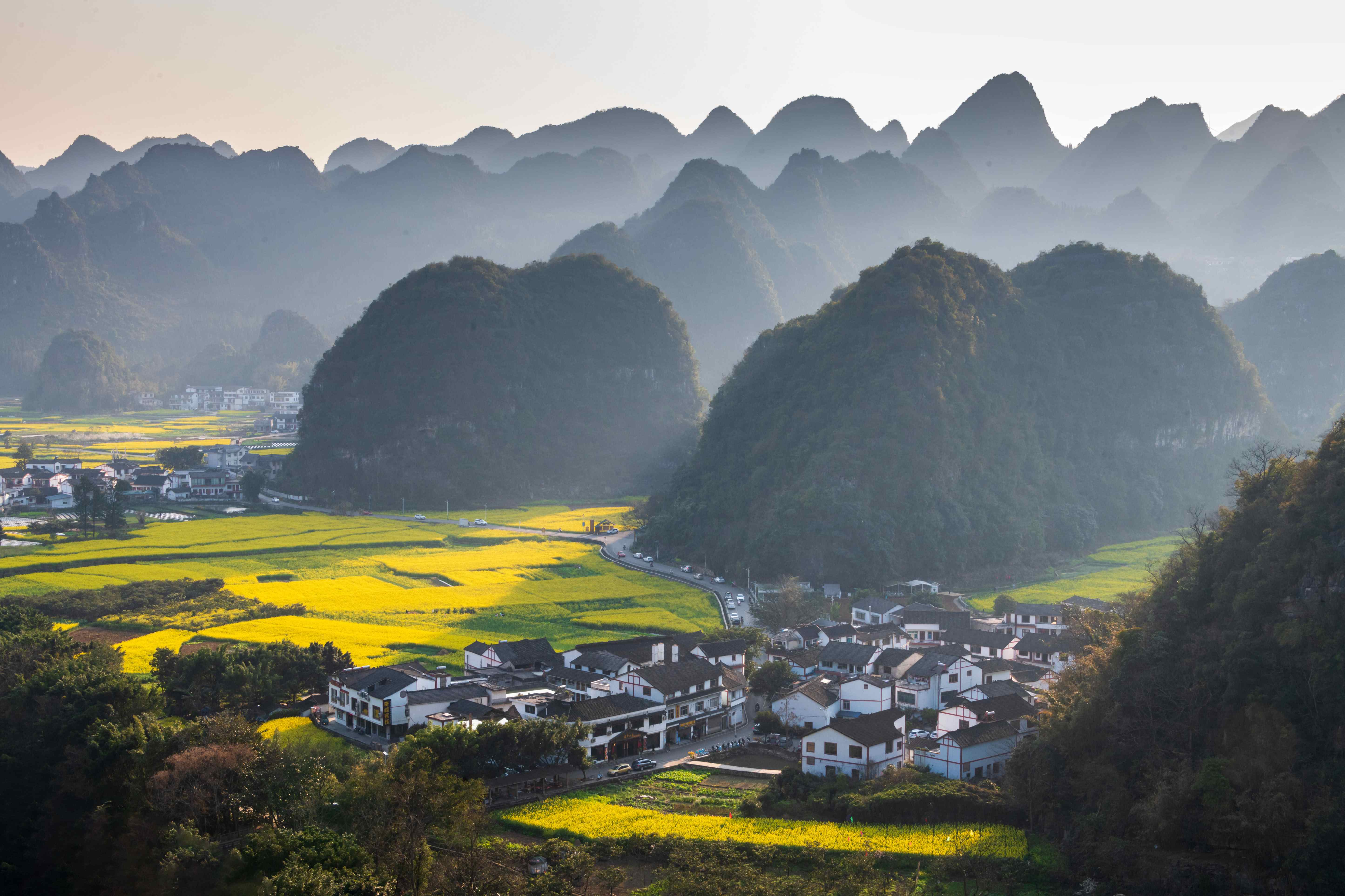 四季景观各异,春季赏油菜花海,夏季宜避暑。建议乘坐观光车俯瞰全景,或租自行车深入田园。尊重布依村寨习俗,品尝蛋炒饭等特色美食时注意饮食卫生。