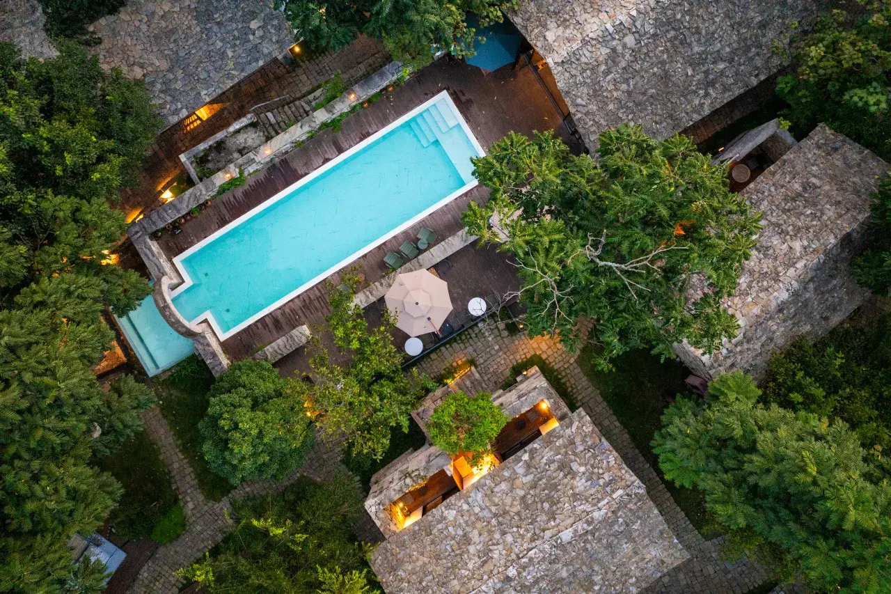 2020 年开业于安顺镇宁黄果树石头寨普叉古村落,斥资 6500 万复活荒废 20 年的 600 年布依石头村,占地 69 亩,拥有 39 间特色客房,每间以村中子辈名姓命名延续文脉。民宿遵循 “修旧如旧” 理念,保留 38 栋石屋原始风貌,老石匠雕刻、旧石磨等成为独特打卡点。配套全日餐厅、咖啡酒吧、蜡染坊、森林泳池与篝火广场,提供非遗蜡染 DIY、安顺小裹卷制作等沉浸式体验。距黄果树瀑布景区仅 10 分钟车程,交通便捷,是 “民宿界奥斯卡” 黑松露奖获奖作品,被誉为布依文化复兴的标杆之作。