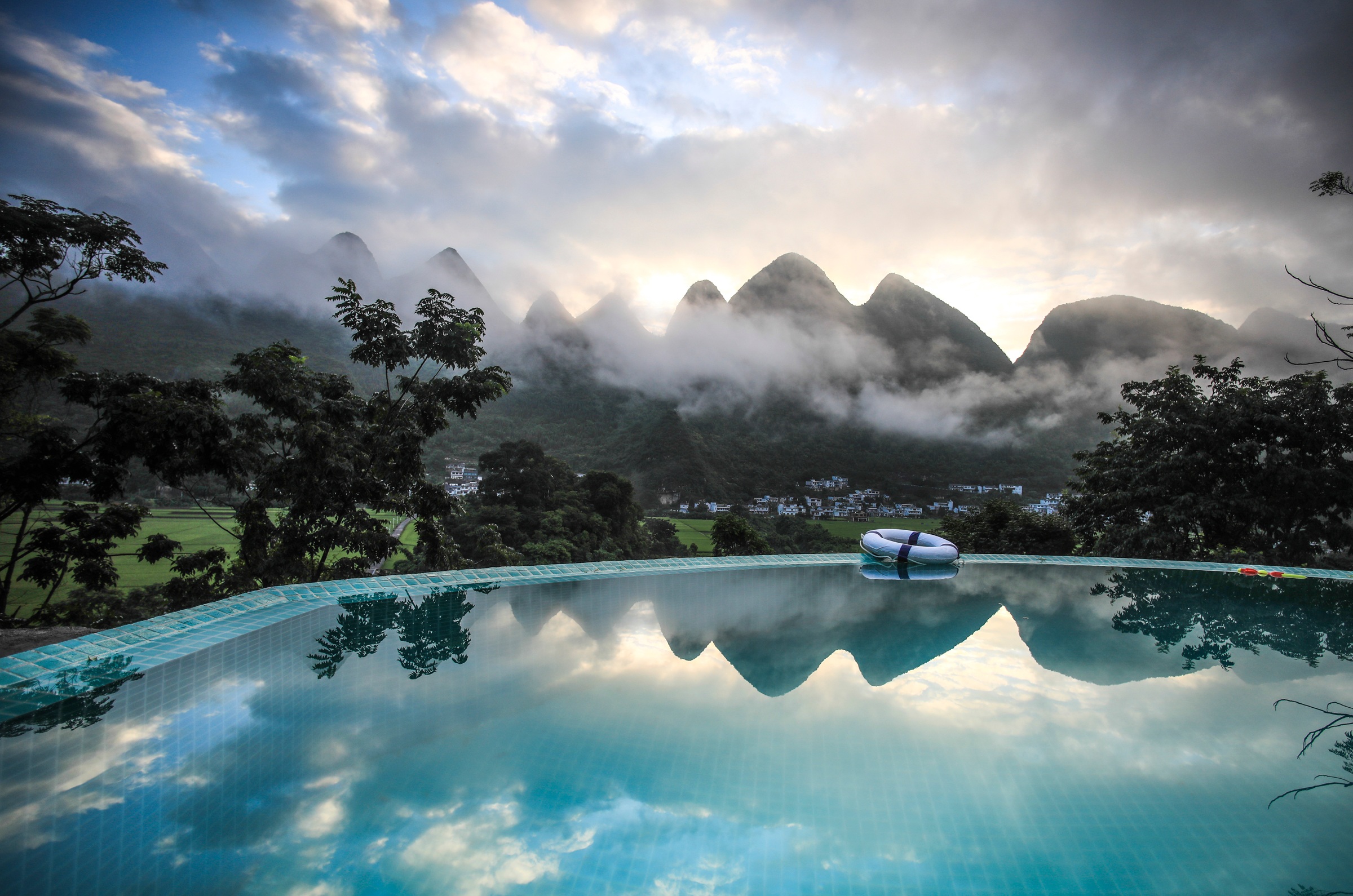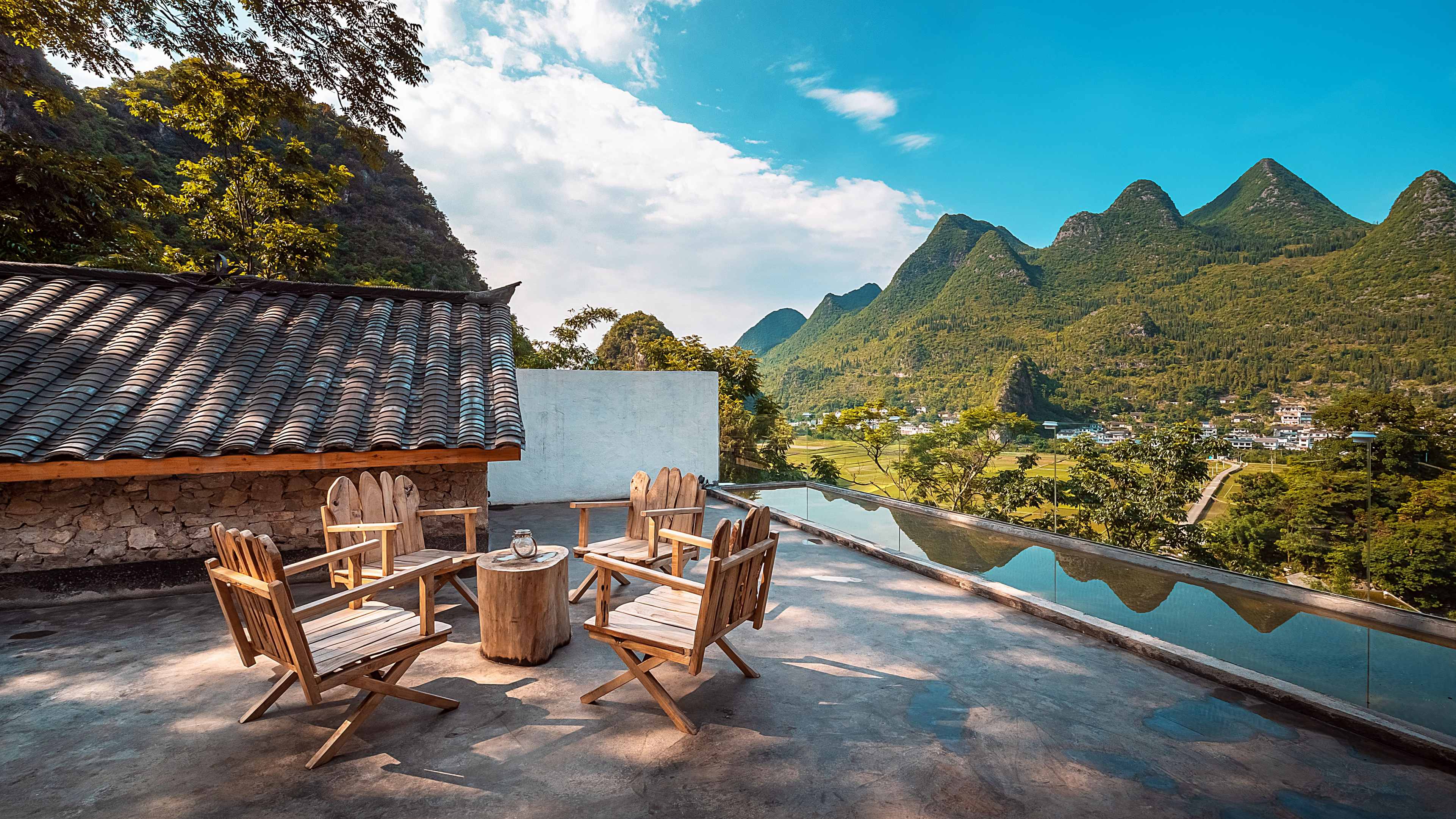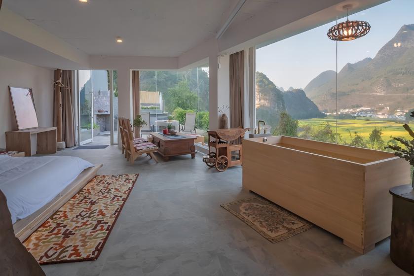 坐落于黔西南兴义市万峰林景区万福村半山,2020 年开业,为全国甲级旅游民宿。由布依族石木老屋改造,保留青瓦石墙与传统建筑肌理,共 14 间全景景观客房,推窗直瞰万峰林与福字田。民宿融合布依非遗美学与侘寂风设计,配套半山无边泳池、瑶浴 SPA、非遗手工体验、观景露台、私房餐厅与星空茶吧。以峰林全景、非遗沉浸、康养疗愈、亲子研学为核心特色,连续多年入选携程口碑榜,是万峰林高端旅居标杆。