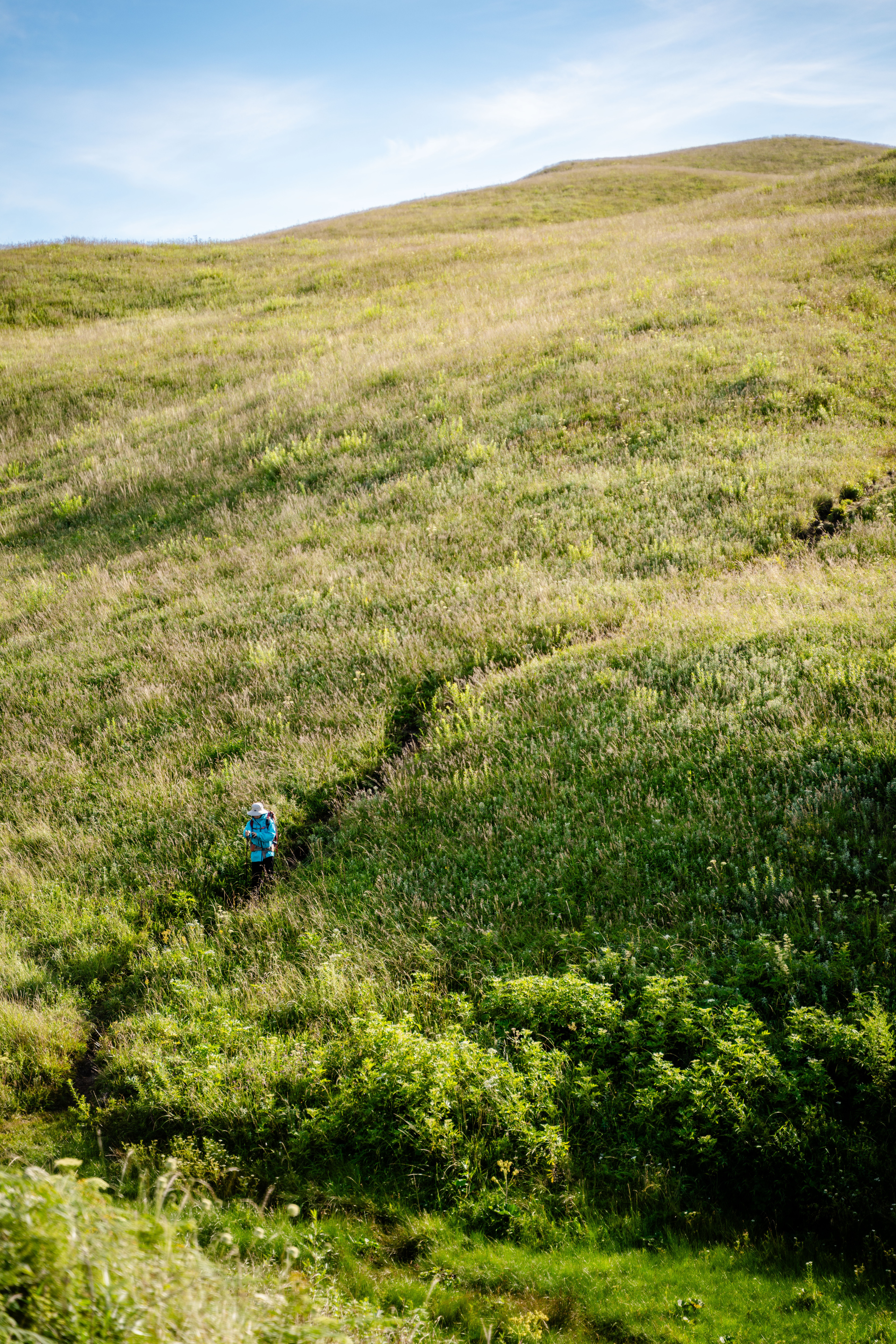 徒步时不偏离预设路径,注意脚下安全,尤其在草原起伏路段。