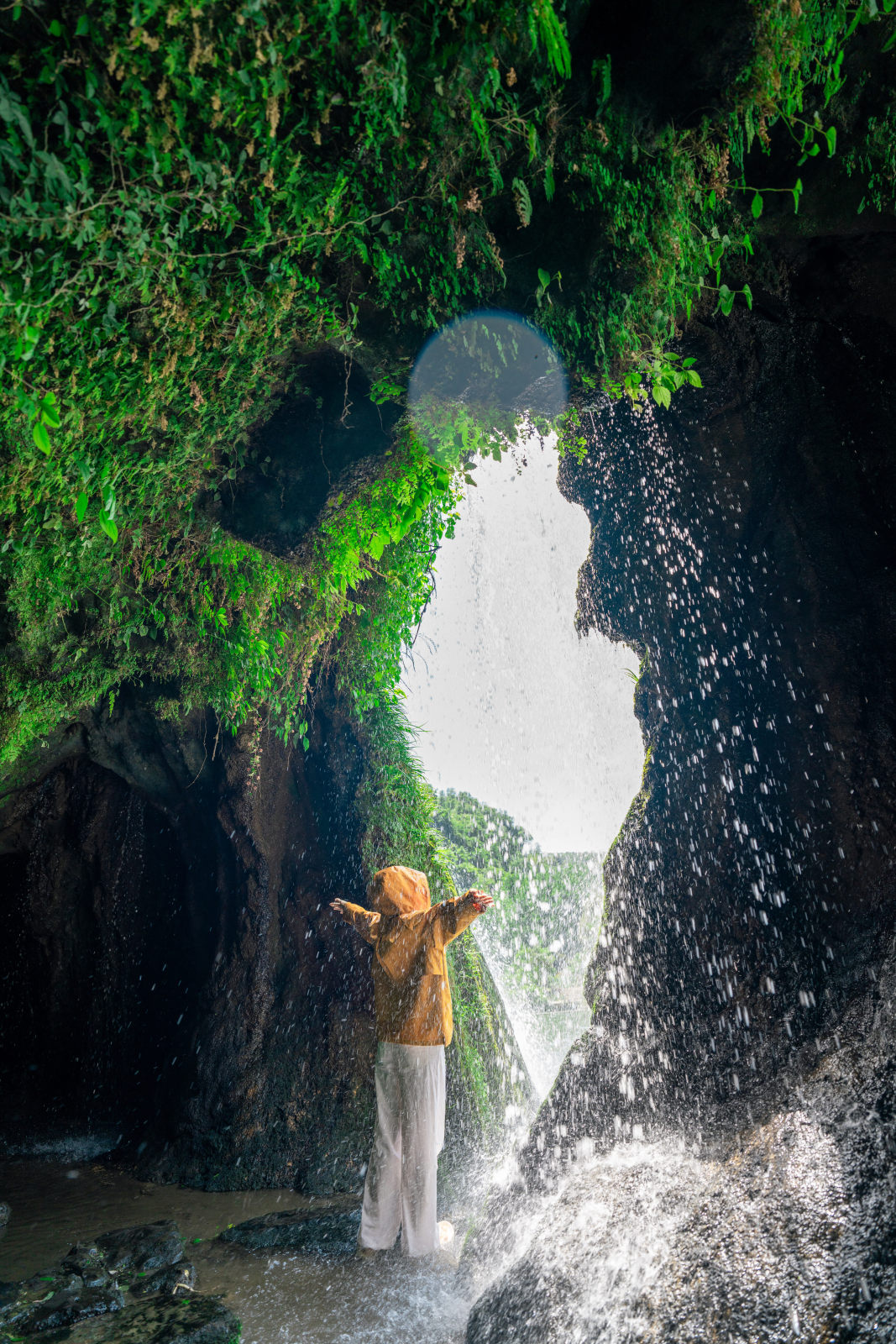 穿越水帘洞时,洞内地面湿滑,请谨慎慢行,注意脚下安全。雨季水量较大,需特别注意安全。如遇溪水暴涨、水质变浑等情况,请立即远离河道,向高处撤离。